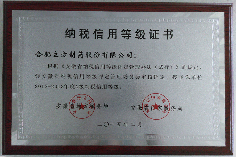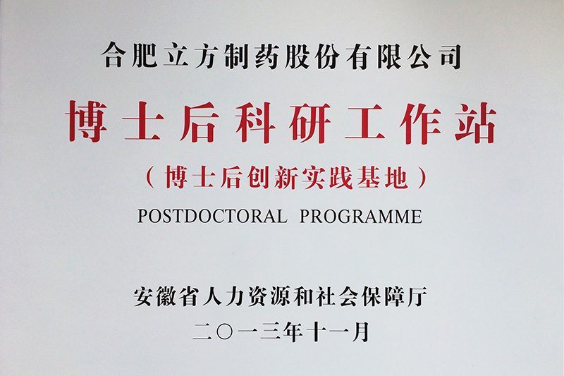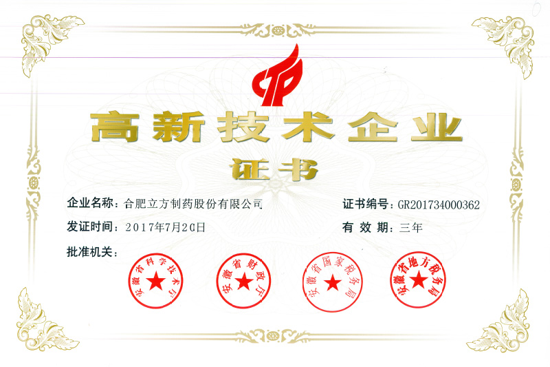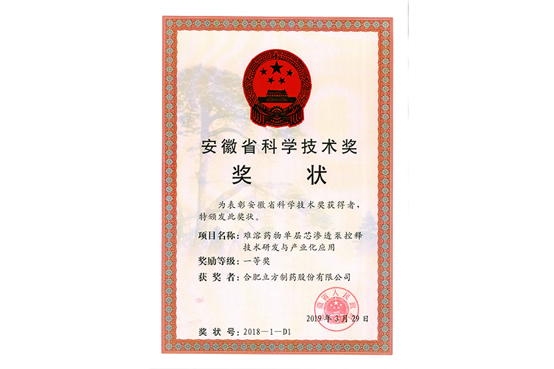 合肥立方制藥股份有限公司科學(xué)技術(shù)一等獎