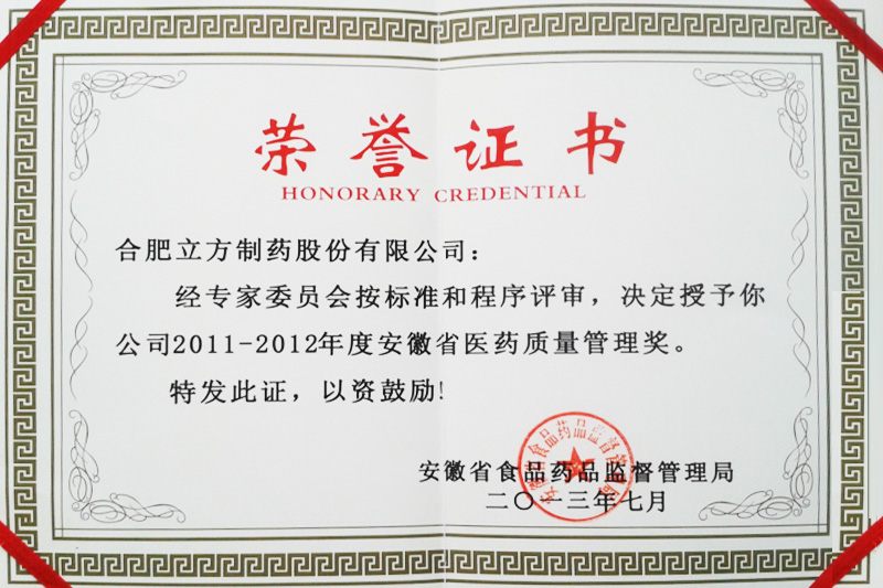2011-2012省醫(yī)藥質(zhì)量管理獎
