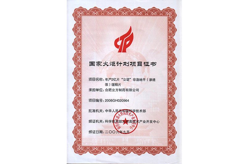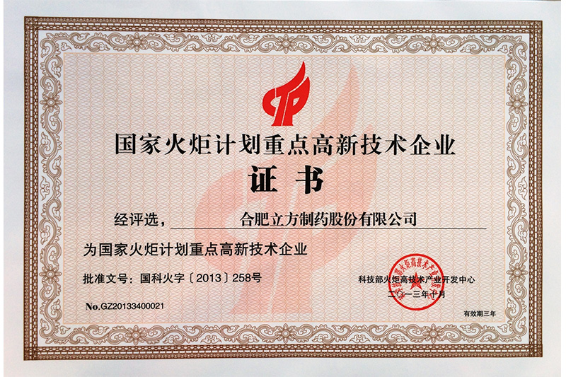 立方制藥 國家火炬計劃重點高新技術企業(yè)證...